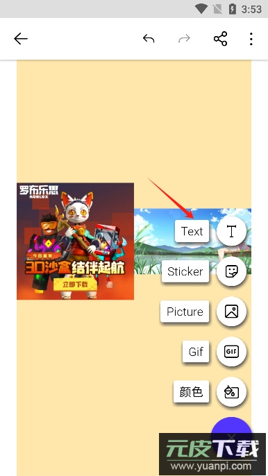 3、为图片添加各类元素,例如文本、贴纸等。