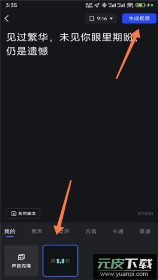 3、输入视频文案,选择个人音色,也可选用方言等特色音色
