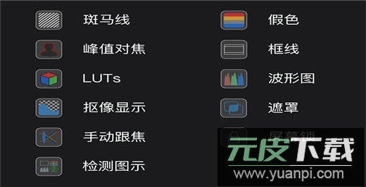 软件还集成多项实用工具,例如斑马线、遮罩显示、手动跟焦等。