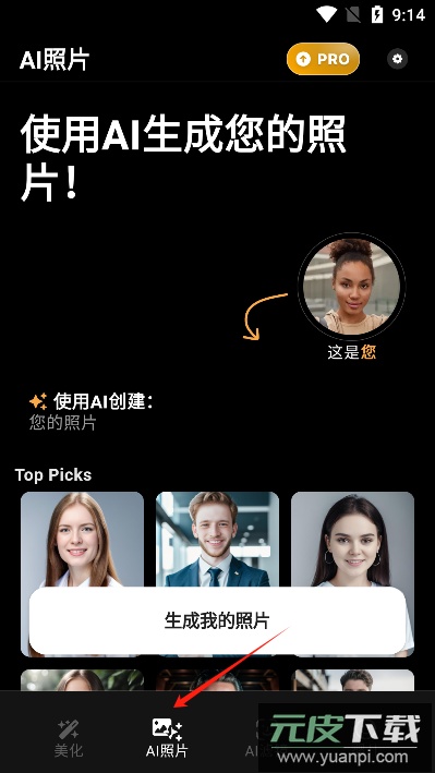 4、软件功能丰富多样,您还可以通过底部导航栏的AI照片选项生成个性化专属图片