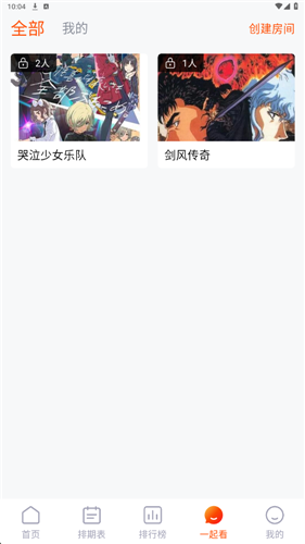 4、最后可以进入一起看频道,创建专属房间邀请朋友同步追剧。