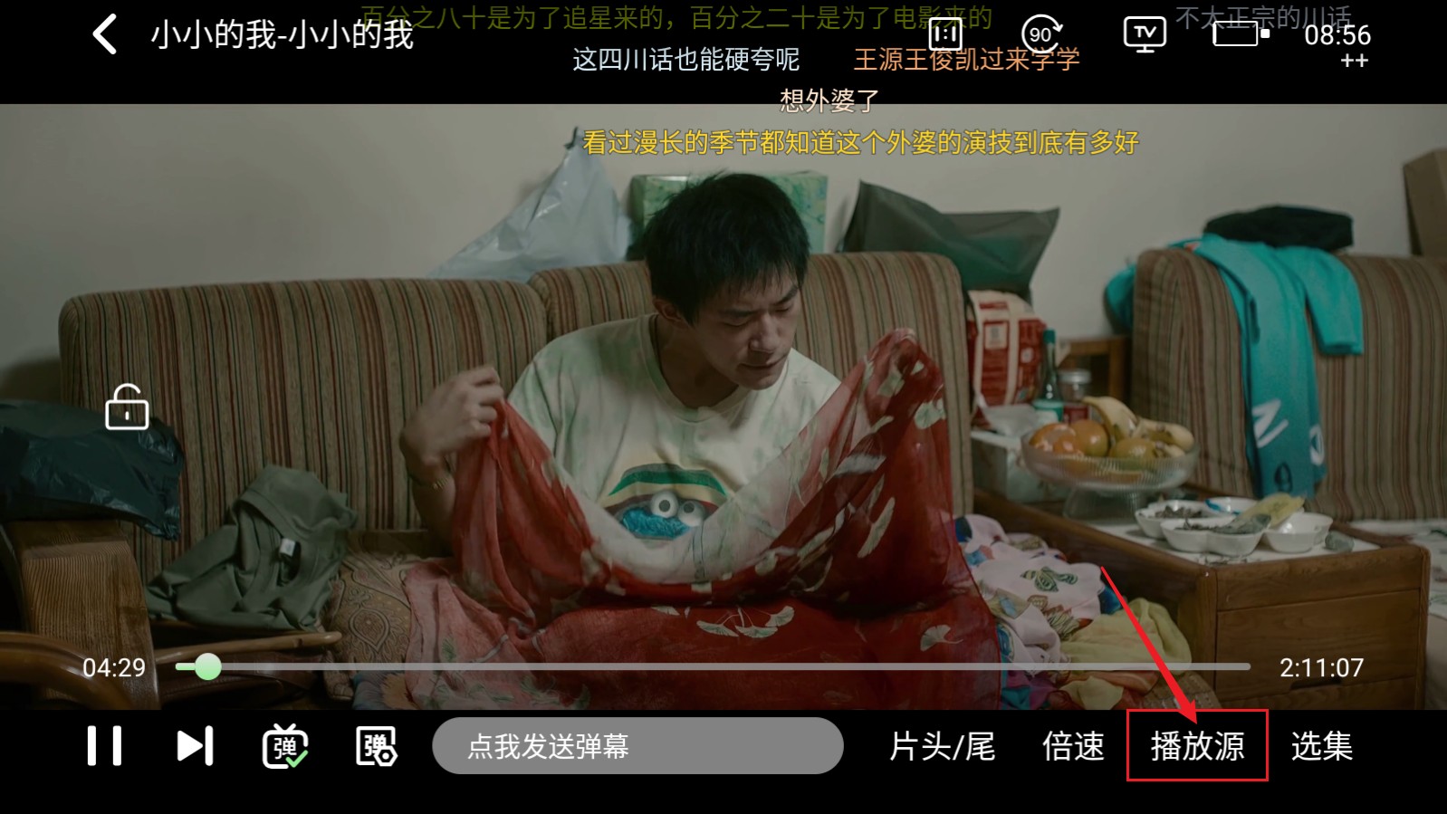 3、在弹出的选项中滑动选择,一键切换到需要的播放源即可;