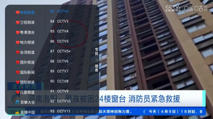 3、点击播放屏幕就能唤醒频道选择菜单;