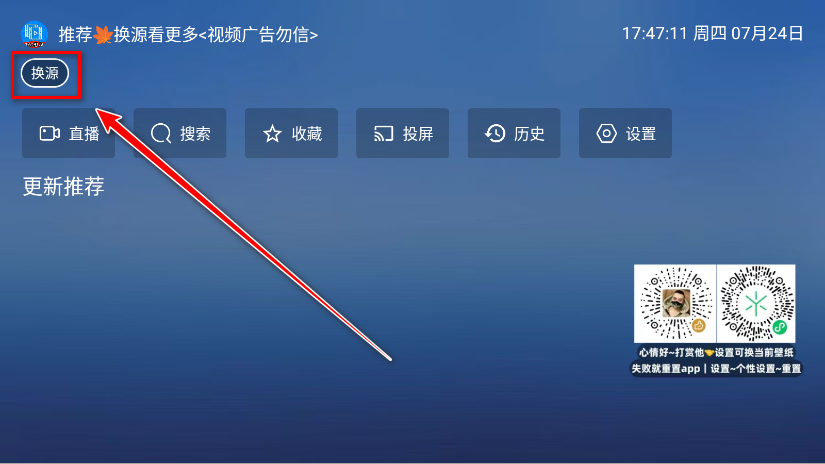 1. 先在本站下载安装好软件并打开,点击左上角的换源按钮;