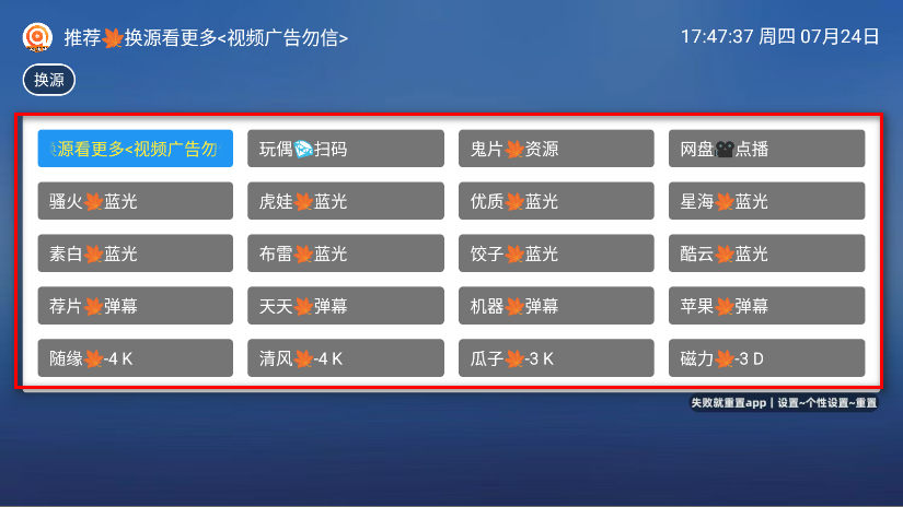 2. 想要用哪个片源直接点击切换即可,这里随机点击一个源做演示;