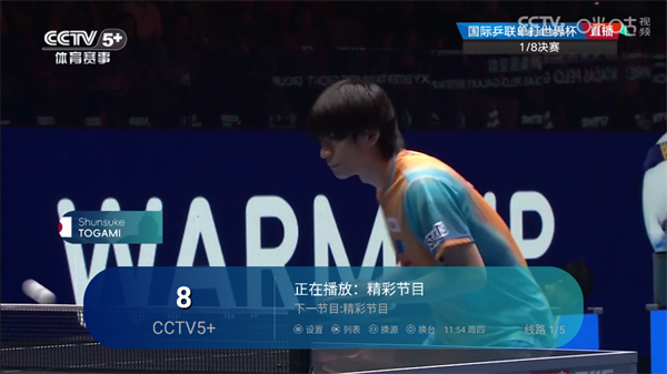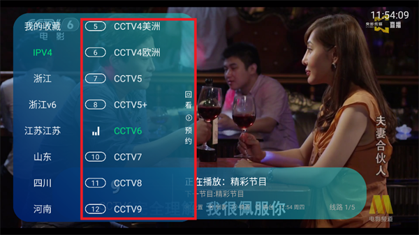 2、点击屏幕左侧区域就能弹出电视频道列表栏;