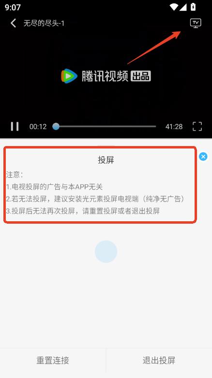 3、点击页面右上角的小电视图标就可以实现投屏操作;
