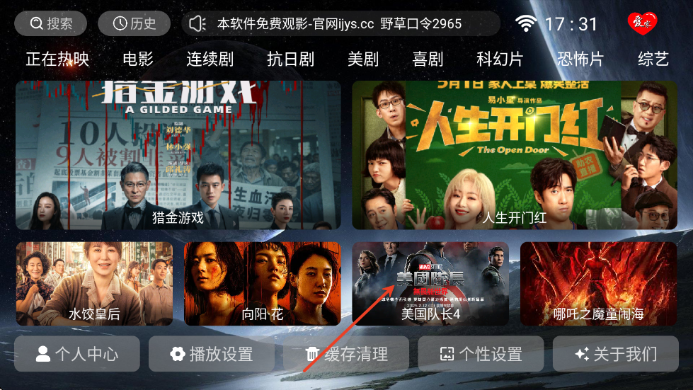 3、选中你感兴趣的电影或者剧集,点击就能进入播放页面;