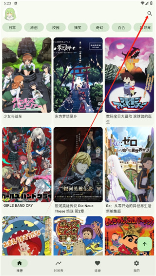 1、进入软件首页之后,点击右上角的搜索图标,查找自己想要收藏的动漫内容;