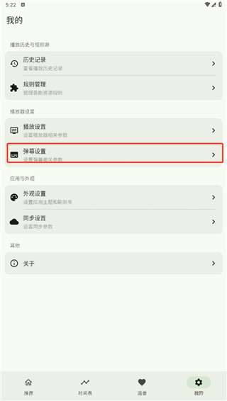 2、进入我的界面之后,找到并点击弹幕设置的选项;