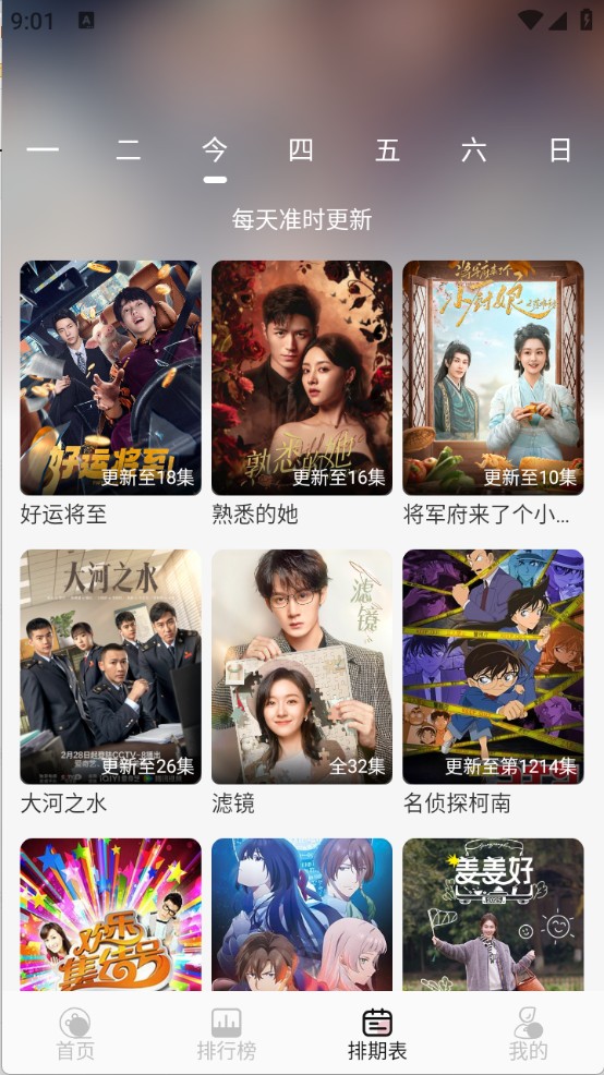 3、排期表板块会同步展示每天的影视更新内容,想看的作品什么时候上线一眼就能知道;