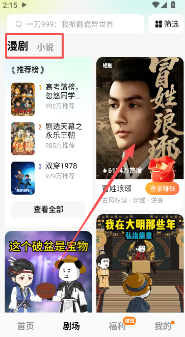 1、红果免费漫剧是红果短剧系列的最新版本,主要内容分为漫剧和小说两大板块。