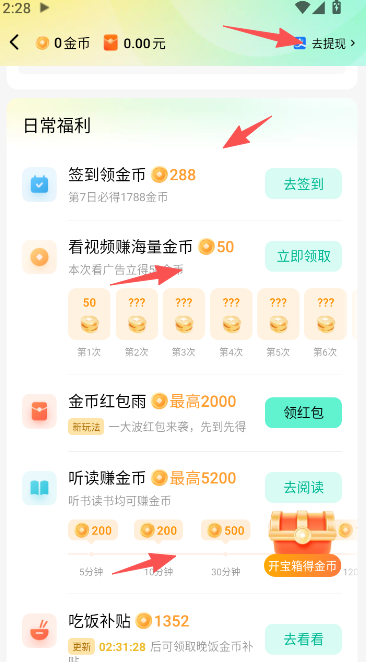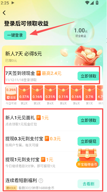 2、通过每日签到或完成指定的观看任务,可以获得现金奖励。