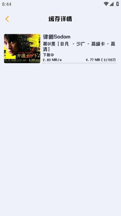 3、进入下载列表页面,就能看到正在缓存的剧集,整体下载速度很可观;