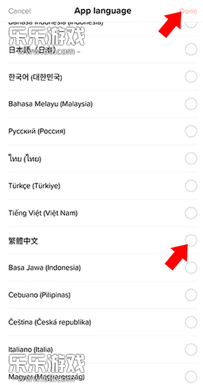 在语言列表中将界面语言切换为繁体中文,随后点击右上角的“Done”确认即可。