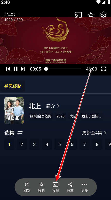 3、点击投屏按钮,然后将自己的手机和电视处于同一wifi下,再点击搜索到的设备即可完成投屏;