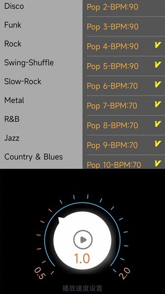3. 界面走清新简约风格,经过全面升级后,同时支持经典指针和数码仪表两种展示风格,用户可分别体验古典节拍器和专业节拍器的不同使用感受;