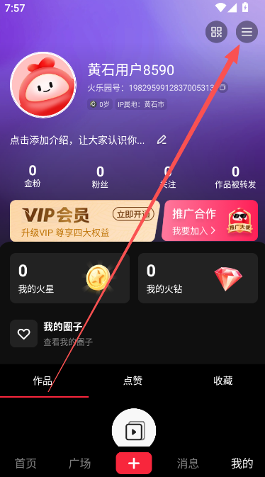 2、进入个人用户主页后,点击右上角的列表栏。