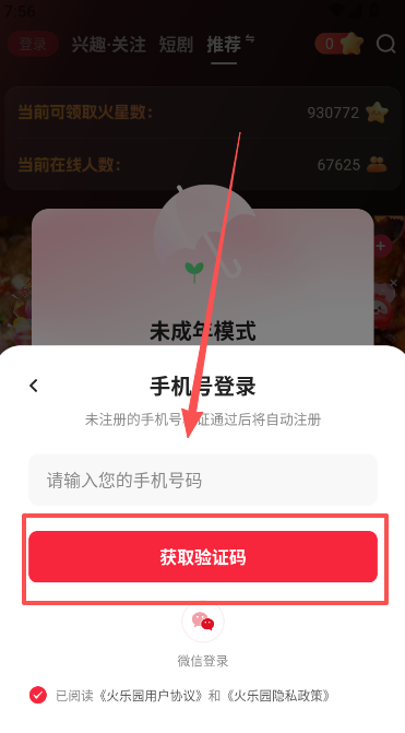 1、使用手机号码登录进入,未注册的账号将自动完成注册。