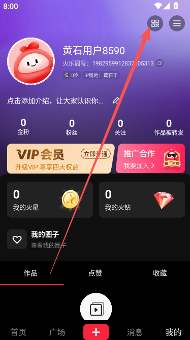 1、进行推广码下载与分享,在个人主页右侧可以找到一个二维码图标。