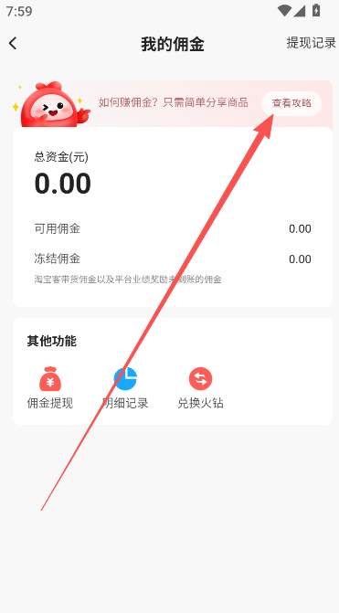 5、按照给出的佣金赚取说明进行操作,完成任务后累积收益即可提现。