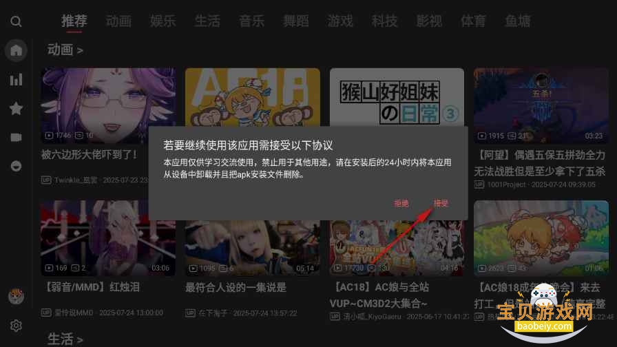 ACACTV是一款获得AcFun官方授权的第三方大屏客户端,其设计遵循极简主义理念,界面干净且富有现代感。与传统电视应用相比,它剔除了大量冗余功能,将操作精简至最基础形态,这一设计源于其BBLL同源架构。在大屏设备上,ACACTV的布局尤为适合智能电视,菜单、播放控制及弹幕显示等模块都安排得清晰直观,用户无论是使用遥控器还是触屏,都能迅速掌握操作方法。