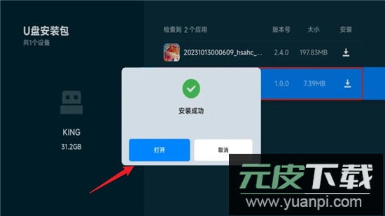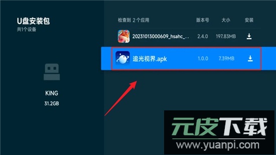 1、下载完成追光视界安装包后,将安装包复制到U盘,拔下U盘插入电视后方USB接口;