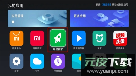 3、保持U盘插到小米盒子上,选择打开系统内的【电视管家】;