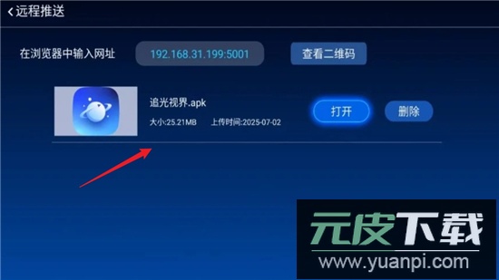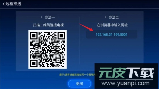 第2步:点击远程推送,可以使用手机扫码或者在电脑浏览器输入页面显示的IP地址;