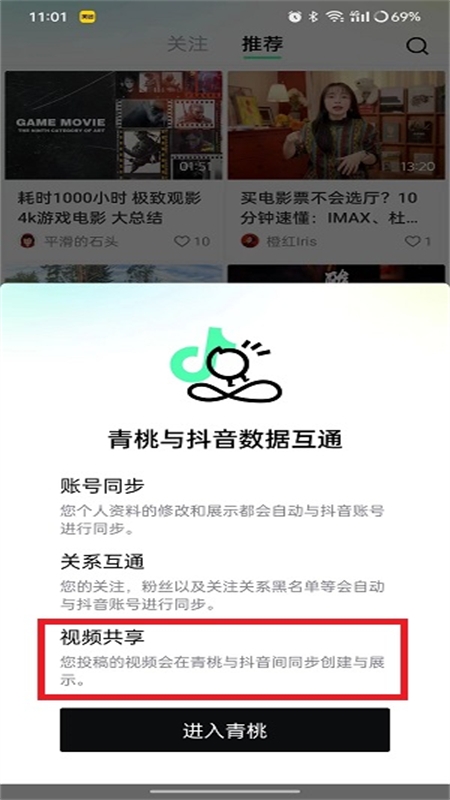 1、青桃与抖音数据相连,通过抖音发布视频可同步至青桃;需注意,青桃侧重中长视频,建议同步1分钟以上的内容。