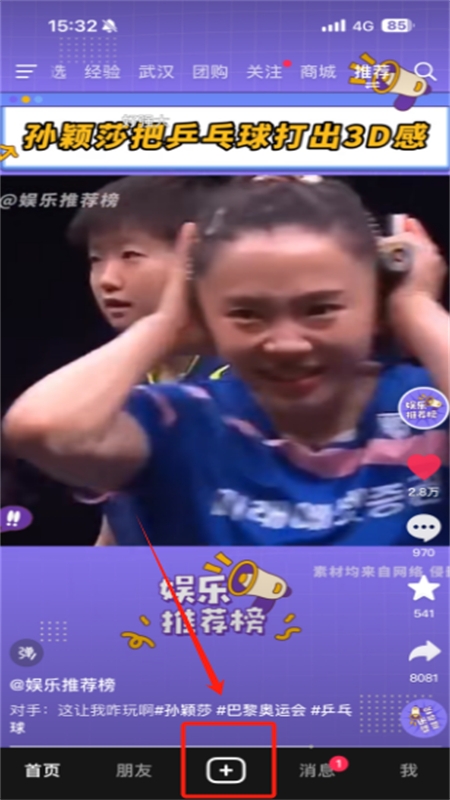 2、打开抖音应用,点击底部导航栏的加号按钮开始发布。