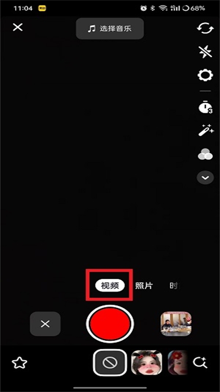3、选择视频选项,可以直接拍摄或从手机相册上传已有视频。