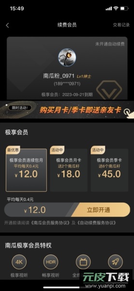 3、然后在账号头像右上角【管理自动续费】-【取消自动续费】-【残忍关闭】就可以了。(已经关闭的会显示未开通自动续费)