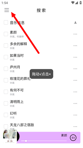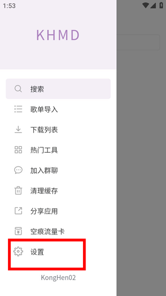 首先下载并打开空痕音乐KHMD应用,在界面左上角找到并点击三条横线图标。