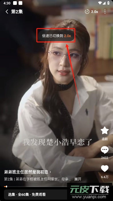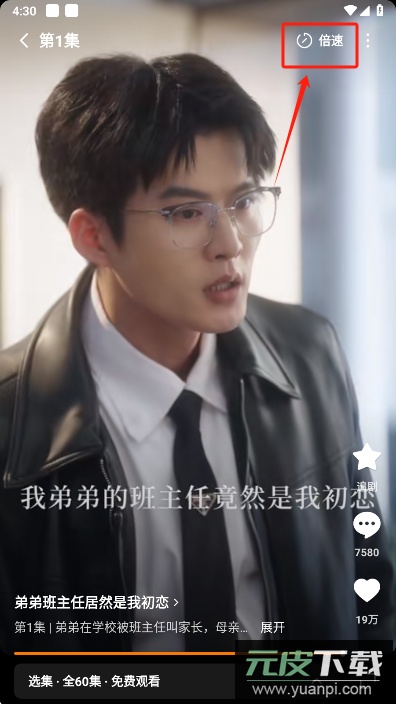 2. 在播放页面点击右上角的倍速按钮。