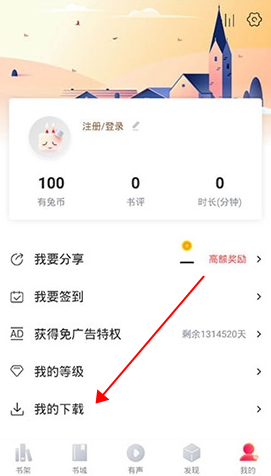 4. 下载音频需要先注册账户;点击底部“我”标签,进入“注册/登录”页面,使用手机或邮箱完成登录。