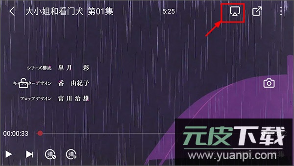 4、进入剧集播放界面,点击屏幕右上角的电视投屏图标;