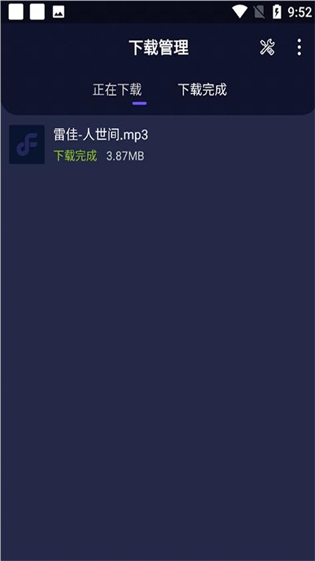 4、用户也可在【管理】页面的【下载完成】列表中查看已下载的音乐文件。