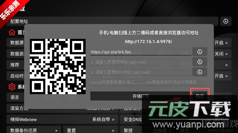 用户可自由添加自定义频道,打造个人电视节目列表,或通过扫描二维码、粘贴JSON/Base64链接导入数据源。