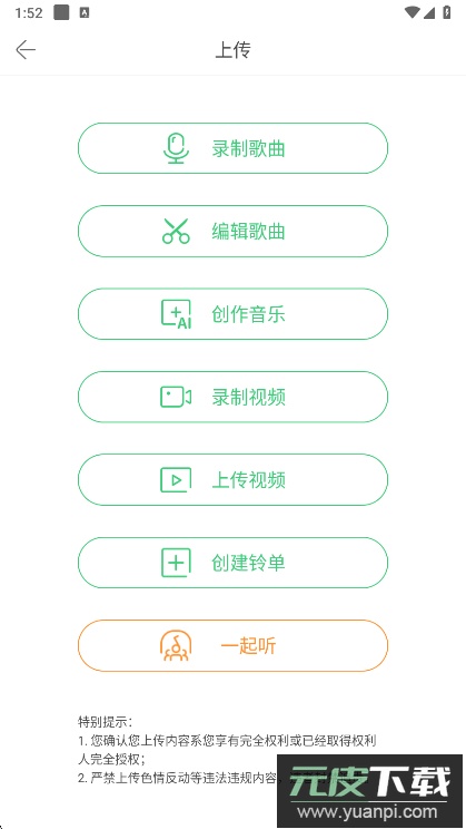 2、上传方式分为两种:录制新歌曲或剪辑现有歌曲,根据需求选择其中一项。