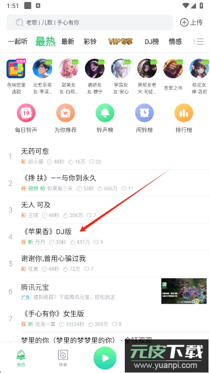 1、在铃声多多的主界面中选择你喜欢的音乐。