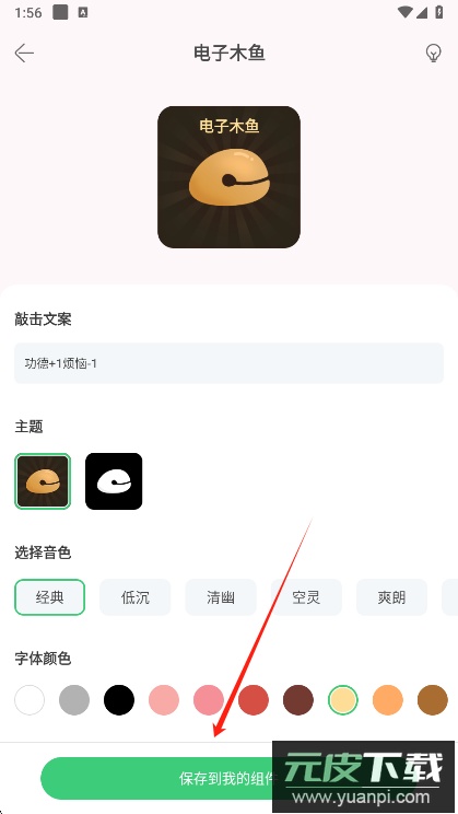 3、当前软件提供了例如木鱼等多种组件主题,选择你喜欢的主题样式,点击保存即可应用。