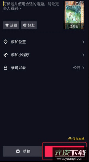 4、编辑视频描述、添加话题与定位信息,最后点击“发布”按钮;