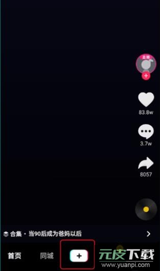 1、打开抖音极速版官方免费版,点击首页下方的“+”号,进入拍摄页面;