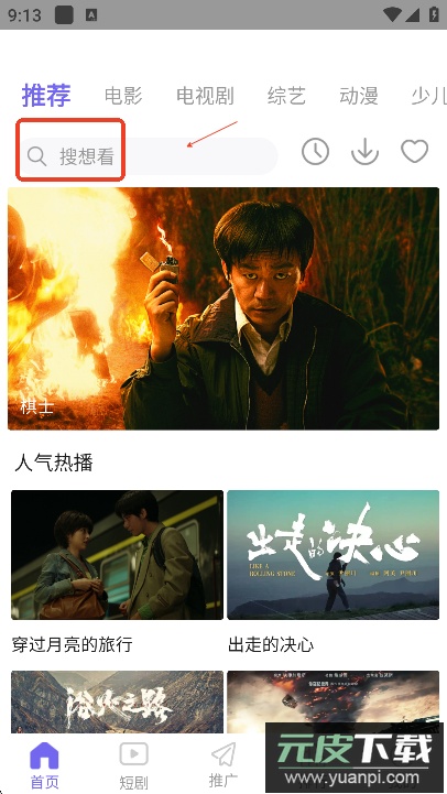 打开软件后,可以在搜索栏直接查找想看的电视剧、电影或综艺。