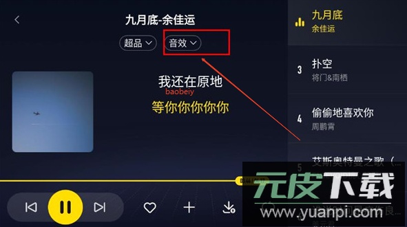打开酷我音乐车机版播放界面,点击上方中间位置的音效图标。