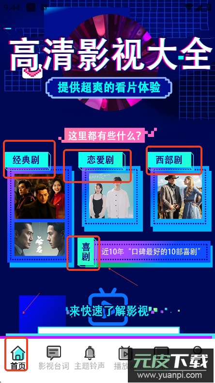 验证通过即进入首页,可以选择观看经典剧集、恋爱题材、喜剧等多种类型的节目。