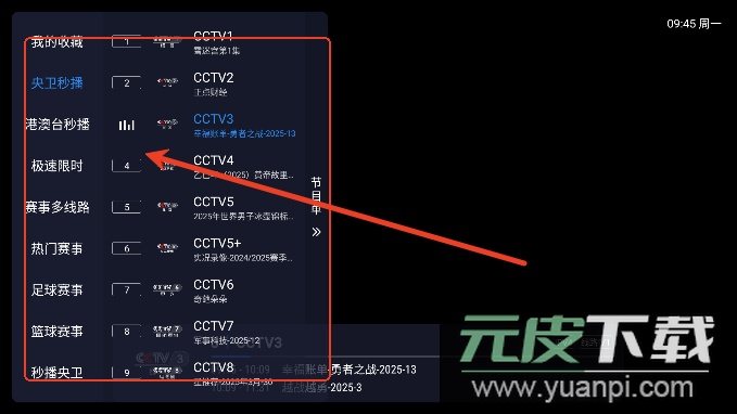 点击界面左侧可弹出频道列表,轻松切换喜爱的电视频道。