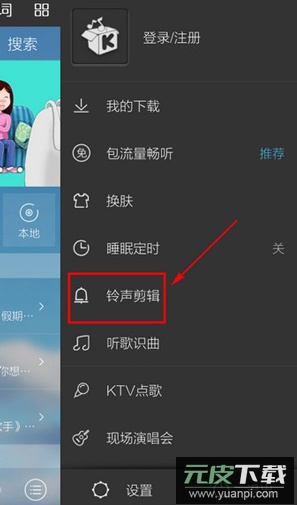 2、在弹出的选项中找到并选择铃声剪辑功能;