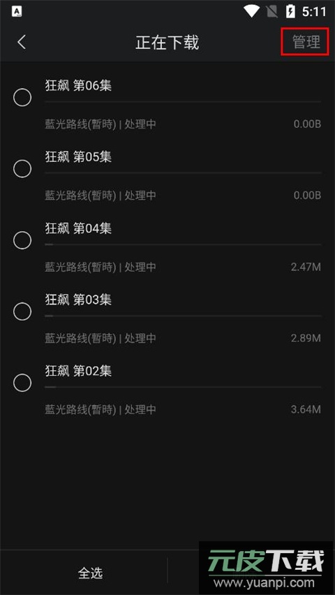 4、如果下载出现错误,可以通过管理功能直接将其删除。